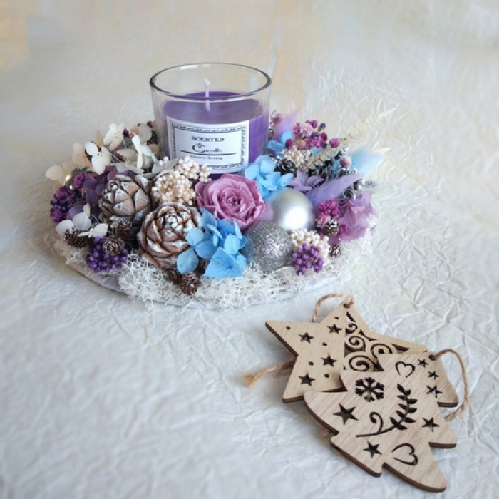 ✿Подсвечник из стабилизированных цветов и сухоцветов с ароматической свечей - цветочный аромат.